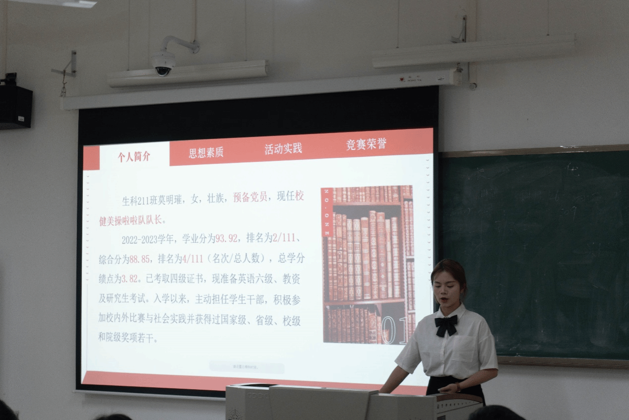 根据学校国家奖学金评分细则,经过个人申报、学院初审等环节,最终确定了8名符合奖学金申请要求的同学进行答辩环节。为确保国家奖学金的公平性,生科213李诗婷等8名入围国家奖学金答辩环节的同学按照抽签顺序依次上台答辩。在答辩过程中,候选人从基本情况、思想素质、学习成绩、科研经历、获奖情况、校内外实践经历等方面进行展示,充分展现了m88 app学子勤劳刻苦、敢于创新、追求卓越的精神风貌。评委们根据学生的现场演说情况进行提问和打分,并给予了建设性意见。