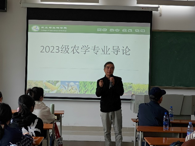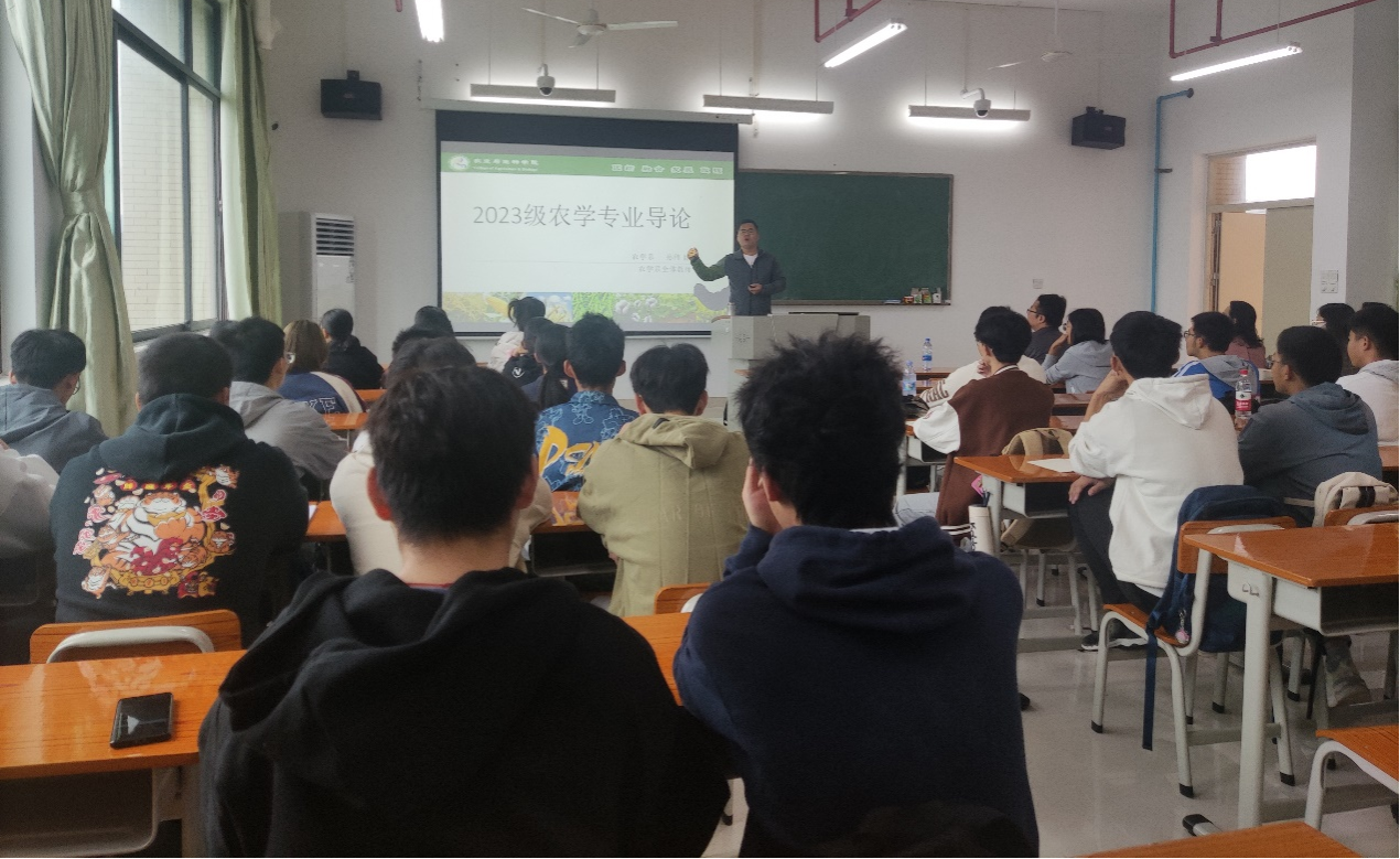 孙伟系主任首先从农学专业的建设历程、师资简介及成果和专业培养方案展开,详细介绍了专业培养目标、培养规格及标准,并对课程体系、所需课程门类及学分进行简单分析。同时,也介绍了农学专业教学资源,包括课程及教学团队建设、校内外实践基地及公共教学科研试验平台共享机制。接着分享了往届学生参与专业相关课题及竞赛所取得的成绩,也就农学专业就业情况及社会反响进行剖析。最后,鼓励学生继承“扶助农工 注重实践”的校训及“农行天下 生生不息”的学院精神,踏实肯干、服务三农,勇于创新、积极进取,做对国家和社会发展有用的新农人。