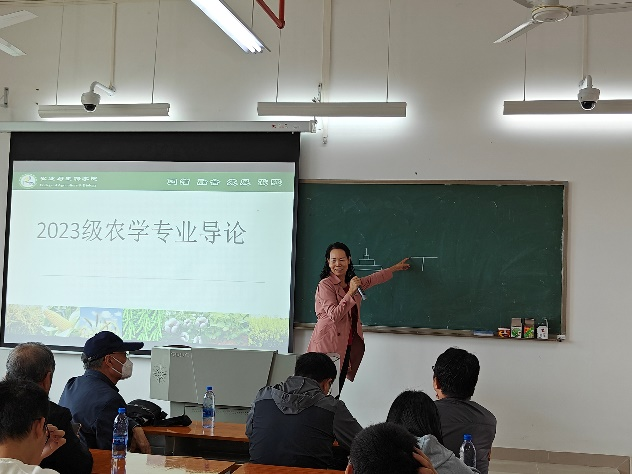 谢振文教授是学院退休的老院长,也是著名的水稻育种专家,鼓励同学们既要学习现代高新技术,也要关注基层建设,做一名热爱农业、关注农村、关心农民的”顶天立地”的复合型农业经理人。同时,也希望大家要多与老师同学们沟通,交流心得,争做一个善于“发现问题、思考问题及解决问题”的创新型人才。鲜食玉米育种专家王晓明教授从农业发展及国家安全角度分享了多年的教学科研经历,鼓励同学们要学农、爱农、爱国,关注农业发展,关心国家粮食安全,努力成才,贡献新农人为国奉献的热忱与精神。广东省优秀班主任赵玉环老师从简单的数字讲起,告诉每一位同学都是全省乃至国家的栋梁,都是金字塔尖顶端的人,是现代农业的“天选之人”。赵老师激励同学们要充满自信,昂首阔步前行奋斗,争取成为一个拥有宽广知识面且有一技之长的高素质农业“T”型人才,把握当下,努力为国家繁荣富强作贡献。m88 app作物学学科带头人万小荣教授认可了农学系对专业导论重视的优良传统,并勉励同学们好好学习以生物技术、机械化和智能化为代表的新农科,成为对国家社会有用的人才。