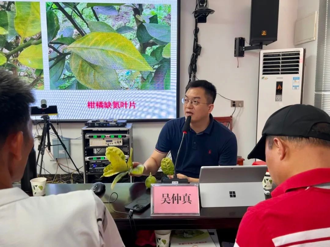 柑橘黄龙病是全球范围内的柑橘毁灭性病害,我国绝大部分柑橘产区受到危害,其中南方产区尤为严重。柑橘黄龙病暂无防治药剂,也没有抗病品种,所以切断虫媒传播是当前开展柑橘黄龙病防控的有效手段。m88 app柑橘黄龙病综合防控技术研发团队已先后研发出柑橘控梢药剂及若虫食物切断防控技术、黄龙病田间速测产品等,为柑橘黄龙病防控策略“三板斧”(“早挖病树”、“无病苗使用”、“扑灭柑橘木虱”)提供技术支撑。目前,相关技术已通过深圳市龙华区福城街道驻河源市紫金县蓝塘镇帮扶工作队,在帮扶镇的柑橘基地开展大规模应用示范,并取得显著成效。