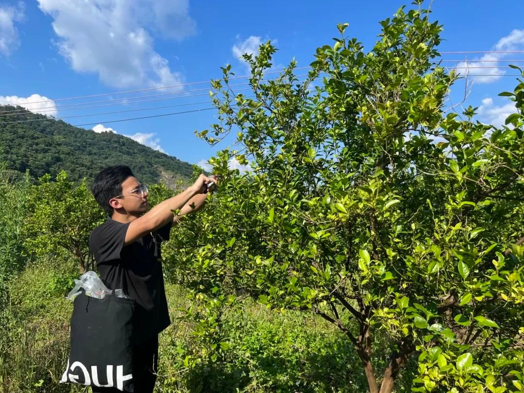 日前,广州电视台对这支团队进行了专访报道。该团队农药学专业研究生林郁同学在专访中详细介绍了回收年桔用于繁衍柑橘木虱种群的原理和方法。他表示,柑橘黄龙病是柑橘产业的毁灭性病害,柑橘木虱是柑橘黄龙病唯一的田间传播虫媒。由于柑橘木虱只会在柑橘树苗的嫩芽上进行产卵,梢枝繁密的年桔非常适合大量繁殖柑橘木虱,满足开展试验所需。年桔有别于其他柑橘苗或者九里香,出于造型需要,果农在种植过程会将其进行修枝整形,而通过多次修剪摘除顶端优势,就可以实现抽发大量嫩芽,有助于繁殖更多的柑橘木虱。