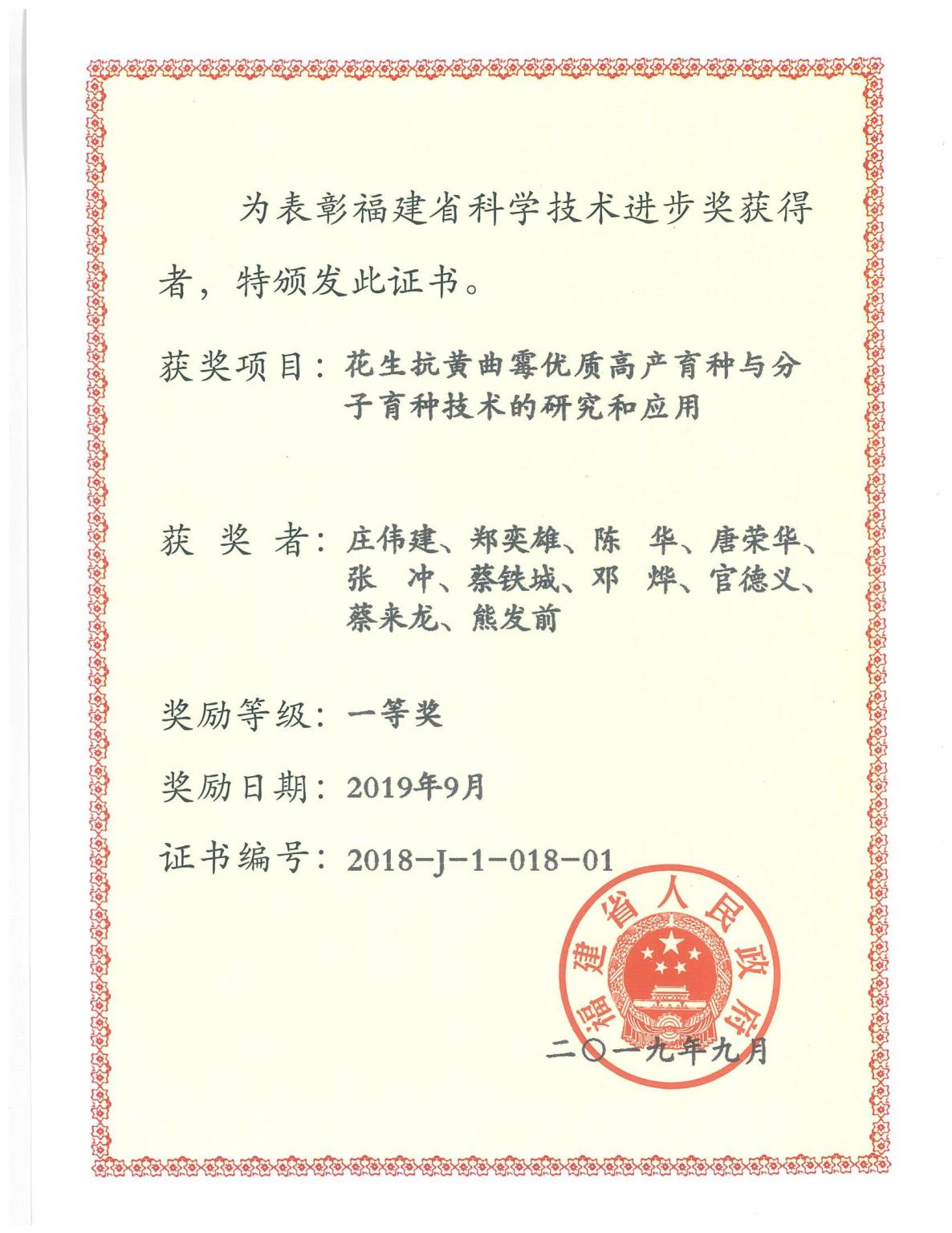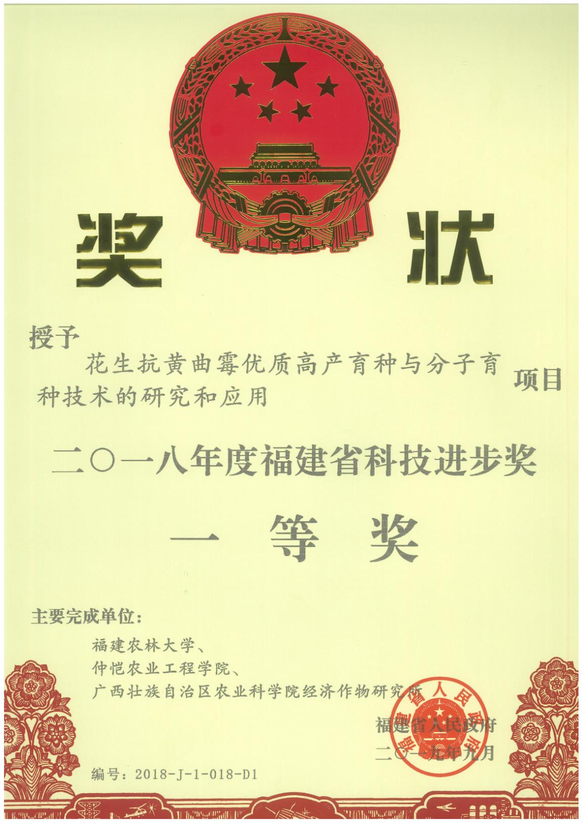 近日,m88 app参与完成的“花生抗黄曲霉优质高产育种与分子育种技术的研究与应用”,荣获二〇一八年度福建省科技进步奖一等奖。这是从日前福建省人民政府公布的2018年度省科学技术奖励名单上获悉的,该成果由福建农林大学、m88 app、广西壮族自治区农业科学院经济作物研究所共同完成,m88 app为第二完成单位、郑奕雄教授为第二完成人。