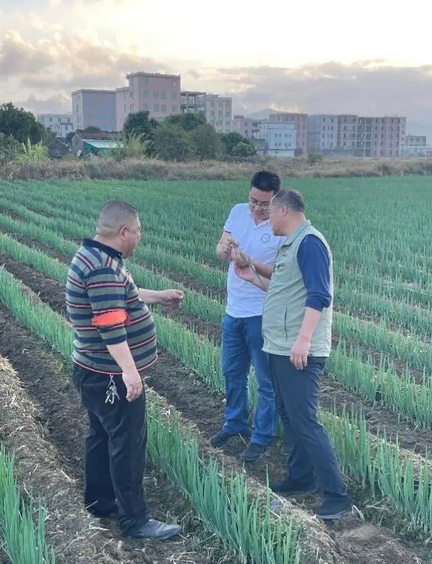 随后,科技特派员团队在工作队带领下到种植大户周昭雄承包的复耕地的大葱种植进行调研,特派员团队表示,经过一年的生产实践证明因地制宜合理施用药肥及轮作可有效降低作物病虫害,保证作物产量和品质,提高农户的经济效益。
