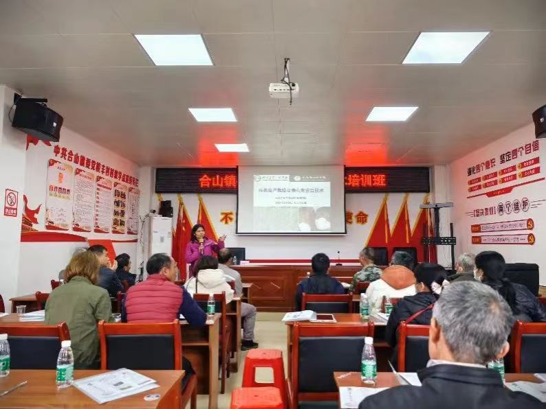 培训会议上,团队代表程桂平教授分别从“粉葛简介”、“粉葛高产栽培技术”、“粉葛病虫害防治技术”、“粉葛储藏技术”四个方面向农户们讲解粉葛相关知识。培训结束后,特派员团队一一回答了学员们的问题,充分调动了大家种植粉葛的积极性。
