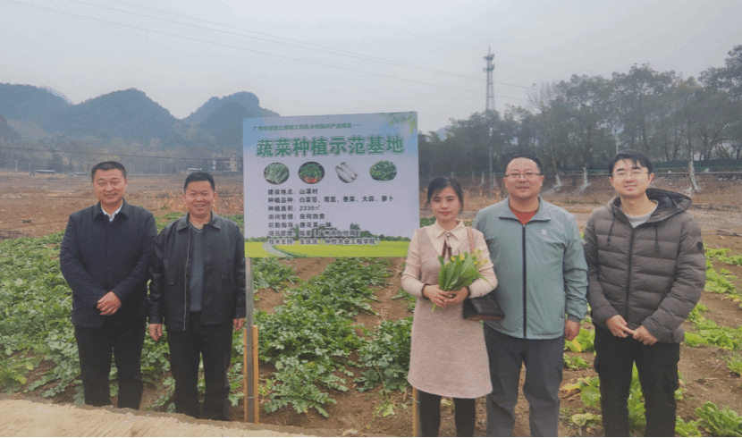 随后,特派员团队与驻镇帮扶工作队一行到广州市派驻三排镇工作队乡村振兴产业项目—蔬菜种植示范基地进行实地调研,考察了菜心、萝卜等蔬菜的长势及田间管理情况,并指导农户做好水肥管理及病虫害防控。双方就下一步基地种植规划设计进行了详细探讨,特派员团队表示,将继续配合工作队规划,持续在种植栽培技术及良种引进等方面给予持续支持,为打造农旅结合特色亮点示范基地发挥科技力量。