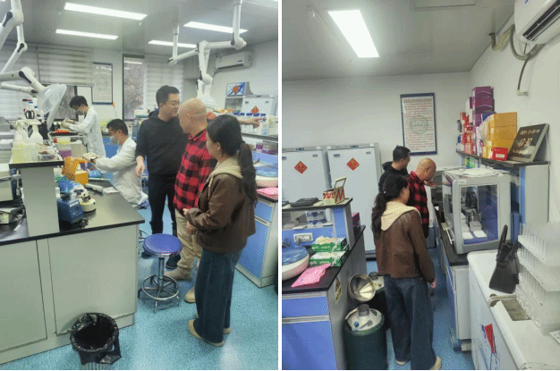 温沃康一行参观了广州市亚热带果树重大疫情控制实验室,了解了实验仪器在黄龙病精准检测的作用。吴仲真老师展示了团队在黄龙病研究过程中取得的阶段性成果,包括适用于田间、无病繁育基地的检测技术。