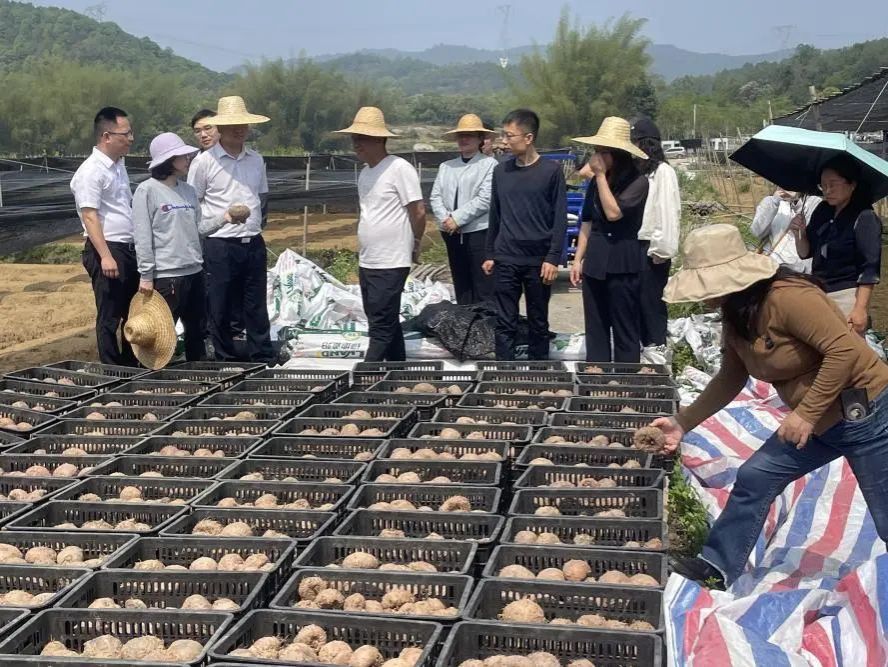 为深入贯彻乡村振兴战略,落实广东省“百县千镇万村高质量发展工程”部署,2025年4月8日至11日,m88 app科技特派员团队在颜珣研究员、韩群鑫教授、叶梦微老师的带领下,赴云浮罗定市金鸡镇开展科技帮扶行动,为当地特色农业产业注入创新动能。科技特派员团队与金鸡镇党委副书记黄尔森、驻镇帮镇扶村工作队队长叶丽平等同志一同前往金鸡镇蔬菜种植基地。金鸡镇新建立的蔬菜种植基地以种植魔芋为主,公司建有完善的魔芋加工配套设施,种植加工产品一体化发展。基地负责人带领科技特派员团队参观了基地,并详细介绍了魔芋种植管理方法、产量销售途径、产业发展现状等内容。正值春耕季节,基地田间魔芋种植正如火如荼地进行着,田边路旁摆满魔芋种子,种植田间拉起遮阴网为魔芋生长提供适宜条件。科技特派员对魔芋种植前种子消毒等措施做出系统指导,强调要重视种前消毒处理,避免将种子上的病原物带入土壤内传播,对植物生长造成消极影响,导致产量下降,经济效益降低。