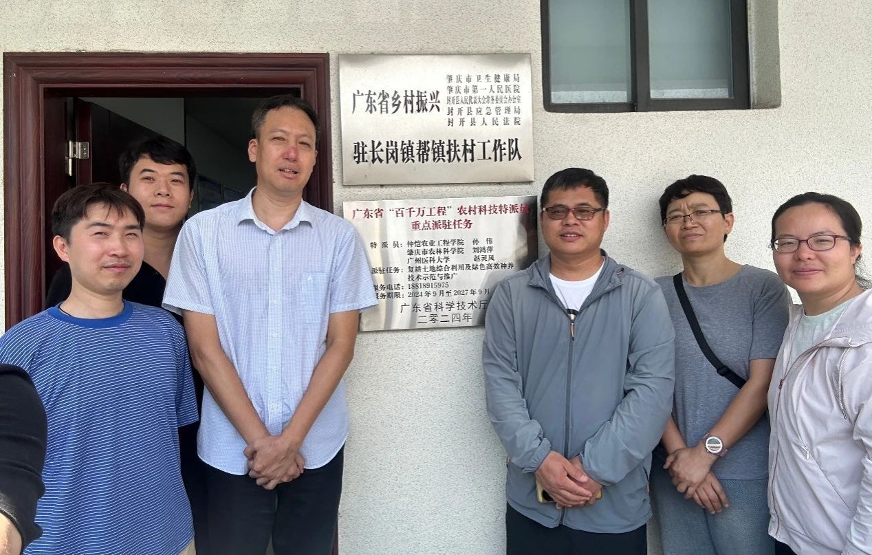 为贯彻落实广东省科技支撑“百千万工程”工作要求,农村科技特派员孙伟,协同肇庆市农林科学院刘鸿萍、广州医科大学赵灵凤一行三人前往肇庆市长岗镇开展农业产业调研和水稻种植技术帮扶,帮镇扶村工作队全程参与,助力乡村振兴。2025年6月6日上午,特派员团队和帮镇扶村工作队全体成员郑重举行了“广东省‘百千万工程’农村科技特派员重点派驻任务”挂牌仪式。挂牌仪式标志着省级科技力量在长岗镇正式落地生根,更象征着科技服务“三农”、推动“百千万工程”走深走实的坚定承诺。