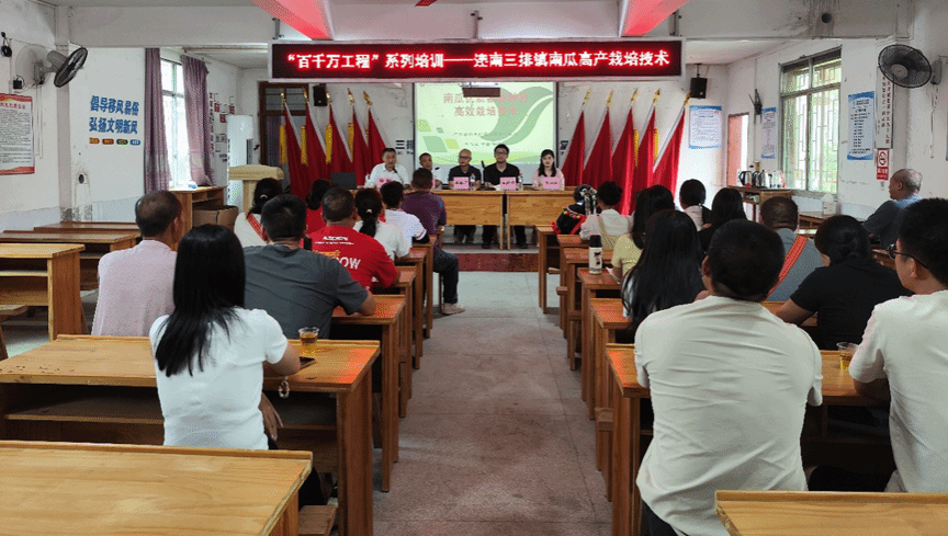 为扎实推进广东省“百县千镇万村高质量发展工程”,助力连南瑶族自治县三排镇特色农业提质增效,2025年6月6日,m88 app农村科技特派员支庆庆博士带队,邀请广东省农科院蔬菜所李俊星研究员、推广中心副主任余超然博士赴三排镇开展南瓜高产栽培技术培训。培训会由三排镇驻镇工作队队员、驻南岗村第一书记陆景主持,全镇各村种植户代表共30余人积极参与。