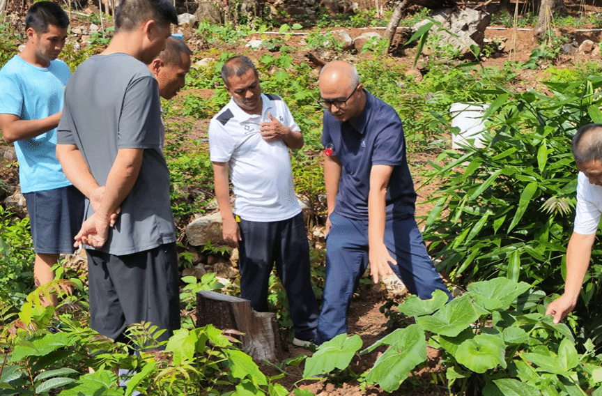 在现场教学环节,专家们现场指认病害特征讲解防控要点,并手把手演示人工授粉技巧、指导农户练习科学压蔓方法。农户们积极互动,教学效果显著。随后,特派员专家团队一行到当地种植大户田间进行实地调研指导。观察到部分植株营养生长过旺,特派员团队建议基地适当减少前期氮肥用量,并现场指导了氮磷钾复合肥的精准施用方案。此外,针对基地内部分低洼区域存在的积水隐患,团队还提出了具体的起垄造坑、完善排灌系统的改造方案,为规模化种植提供精准科技支撑。