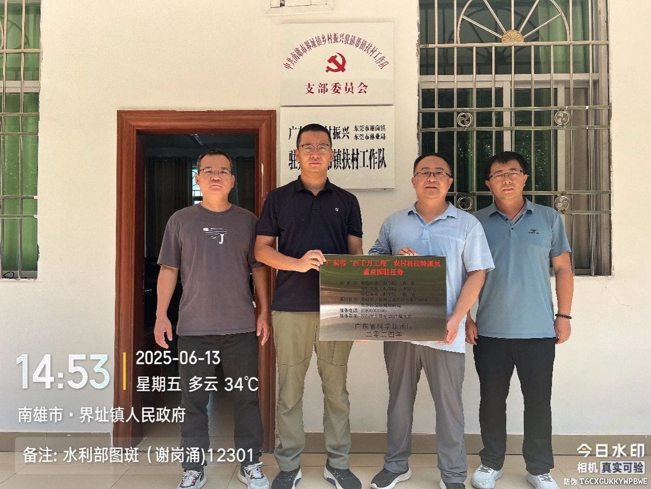 2025年6月13日,m88 app农村科技特派员蒋锋带队,邀请m88 app农学专家刘鹏飞教授,前往韶关市南雄市界址镇,与界址镇驻镇帮扶工作队共同举行了 “广东省‘百千万工程’农村科技特派员重点派驻任务”挂牌仪式。此次活动标志着省级科技力量正式落地界址镇,为当地农业高质量发展提供稳定长效的技术支持。