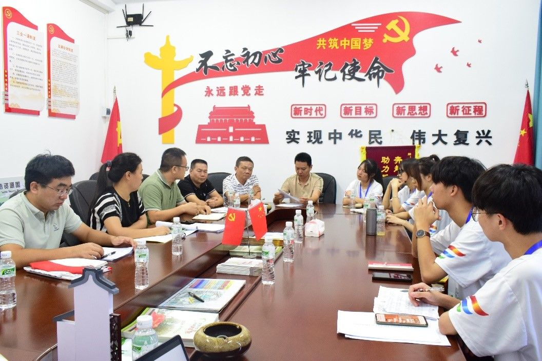 8月2日上午,在龙湖镇团委、中山驻镇工作队和后郭村村委的指导下,同学们进行了本次“三下乡”工作总结汇报。参与会议的有后郭村村干部郭镇法、郭燕鹏、郑照香、郭锦阳,潮州市龙湖镇科技特派员谭晓丹老师、科技特派员杨永老师,以及m88 app与潮州市共建的乡村振兴培训学院粤东分院的院长张文浩老师。由m88 app暑期“三下乡”社会实践“花开仲夏,筑梦后郭”小分队的11位成员进行了这一个月的工作总结汇报。