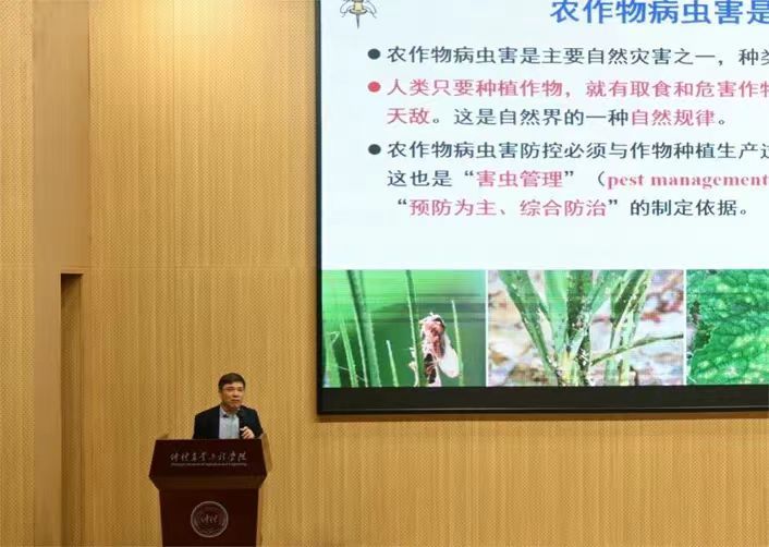 在讲座期间,陈学新教授以通俗易懂的语言为大家介绍了我国害虫全程生物防控的技术与当前研究的部分成果。陈学新教授首先点明了害虫全程生物防控的历史使命,展现其在农业应用的重要地位,同时也说明了害虫全程生物防控现在所面临的挑战,但是陈学新教授对克服这些困难充满信心,并且对年轻一代寄予厚望。陈学新教授以生动的例子剖析了害虫全程生物防治的理论创新和技术突破,简明扼要地说明了害虫全程生物防治在农业应用上的重要性和光明的发展前途,分享了团队在这一领域的最新研究进展。讲座生动有趣,观点创新,让在场师生受益匪浅。