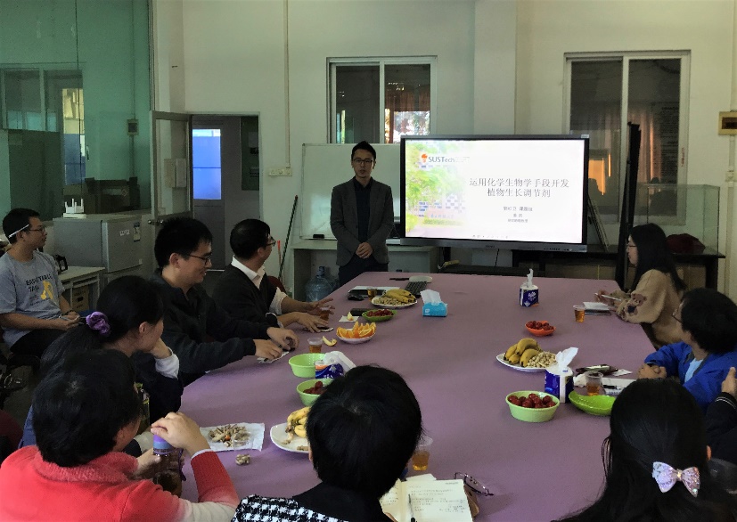 当日上午,姜博士和孙博士分别作了题为“运用化学生物学手段开发植物生长调节剂”和“小分子PZA抑制拟南芥乙烯生物合成作用机制研究”的报告,详细介绍了他们所在研究团队近年在化学生物学领域新功能化合物筛选、设计及其作用机制的主要研究成果,其中部分成果已在国际知名刊物《Nature Communication》和《Molecular Plant》等发表。接着,m88 appm88 app何生根教授及其团队研究生李杨分别作了题为“团队鲜切花采后衰老与保鲜研究进展”和“2-吡啶甲酸对香石竹切花采后衰老的调控与机制研究”的简要汇报。报告会由何生根教授主持,m88 app及园艺与园林学院的部分老师和研究生、佛山林业科学研究所农艺师丁岳炼、广东大观农业科技有限公司农化部经理冼锡金等参加了学术报告会。