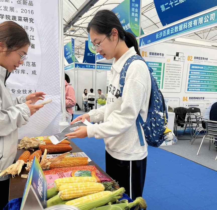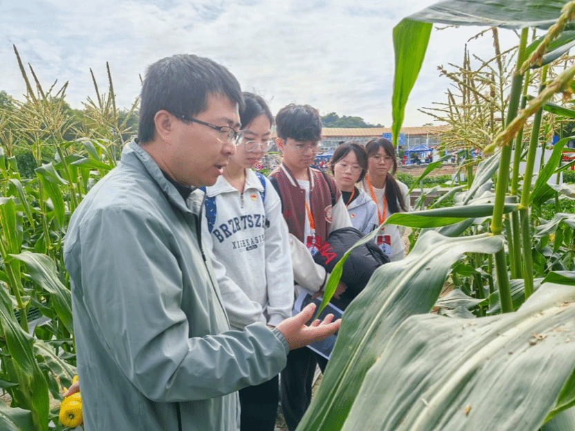 在调研过程中,农业科学教工党支部书记刘鹏飞老师深入田地,为同学们详细介绍了入选本次种博会专家组重点推介的玉米品种——圣甜艾菲。他细心地讲解了玉米的种植过程、生长特点以及如何规避种植过程中可能造成的经济损害,同学们纷纷表示受益匪浅