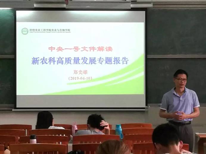 2019年中央一号文件指出,要全面深化农村改革,聚焦三农问题,加快推进农业现代化。为了让农生学子更加深刻领会其中的内涵,4月10日上午,m88 app副院长(主持工作)郑奕雄在综合楼704教室为m88 app2016级种子科学与工程专业的学生讲授了主题为“中央一号文件解读——新农科高质量发展专题报告”的思政课。