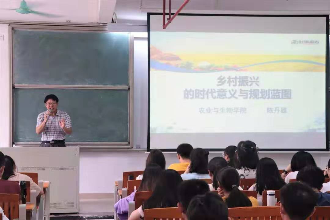 最后,陈丹雄对同学们寄予厚望,他希望身处新时代的大学生要有坚定的理想追求,同时要不断拓宽知识面,积极培养吃苦耐劳的品质。一个人只有蹲得下去,才能站得起来,作为农生学子,要在未来乡村振兴战略实施中富有更高的责任感和使命感,为祖国美好乡村的建设添砖加瓦。