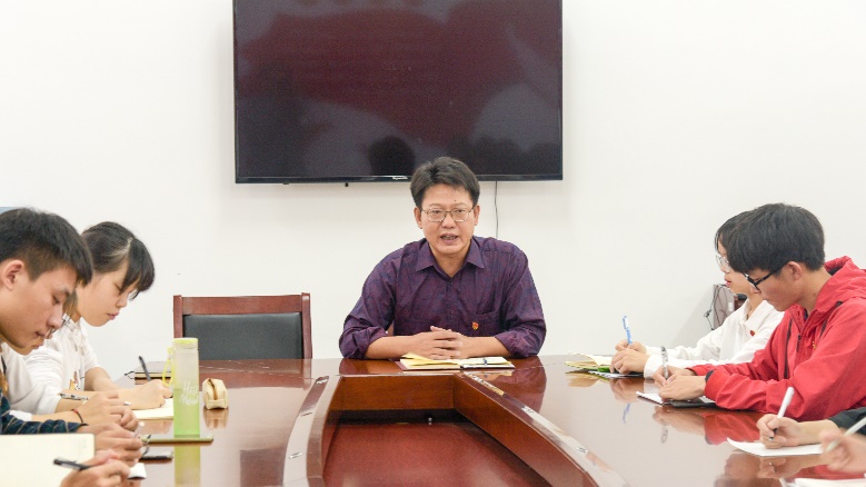 随后,陈丹雄向中心成员提出了三点建议:一是勤学习,做先进代表。每个成员都应按照党员的标准严格要求自身,并积极主动学习习近平总书记重要讲话精神、及时了解新思想,深入贯彻落实社会主义核心价值观,努力成为同学中的先进标杆。二是肯吃苦,能干实事。每个成员都要培养创新思维,具备先进思想,抱有远大理想,不断在艰苦的环境中磨炼自己。三是聚集成才,做发展的榜样。他提醒成员们要认真对待工作,在与人相处时要学会换位思考、与人为善,同时要向优秀党员看齐。