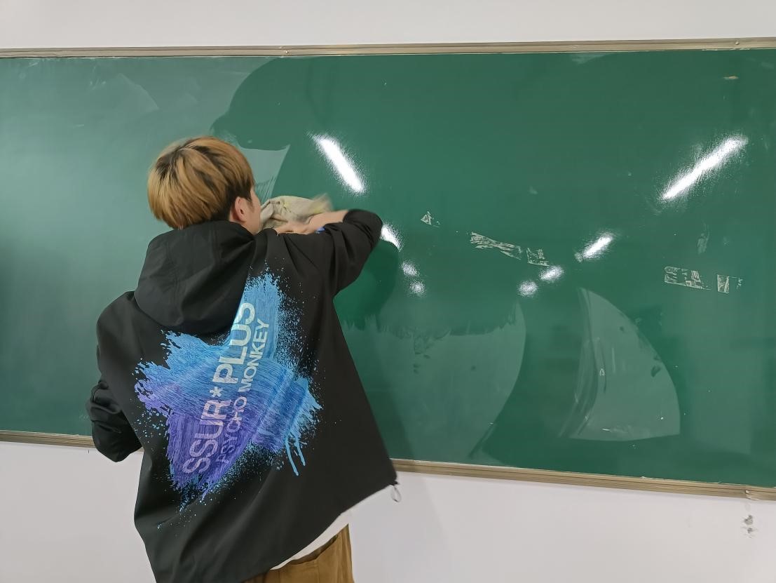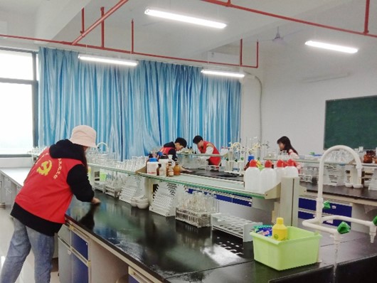 在实验室老师的指导下,党员们分批对m88 app实验室进行全面的清扫,对实验台、椅子、地板、黑板等每一个角落,都认真清理,不留死角。实验室内种类繁多的实验用品、精密的实验仪器、各类教学设备及模型等,也都在老师的指导下擦拭整洁。