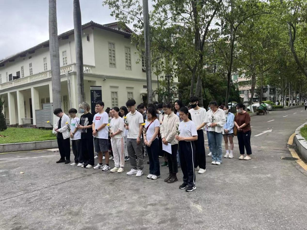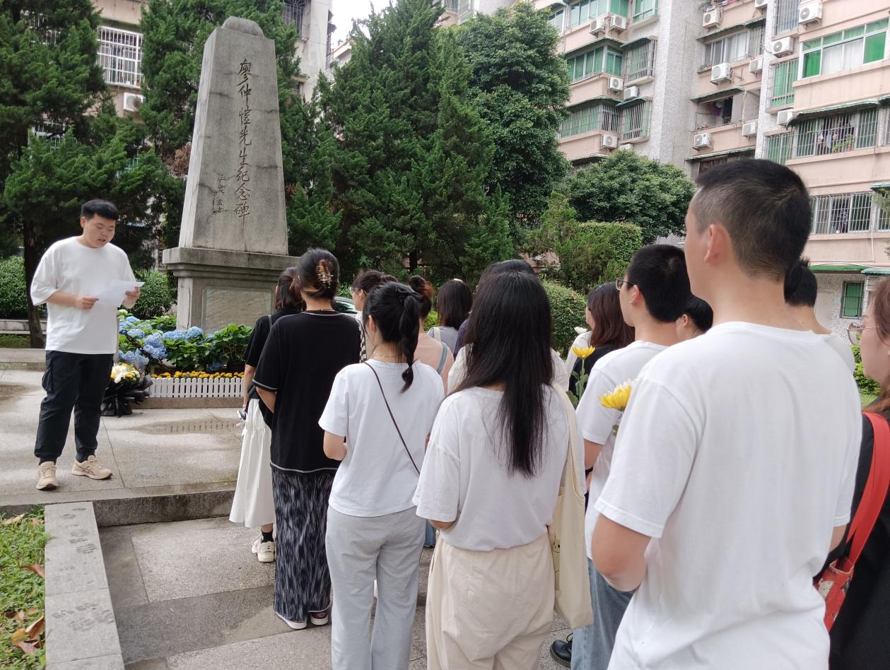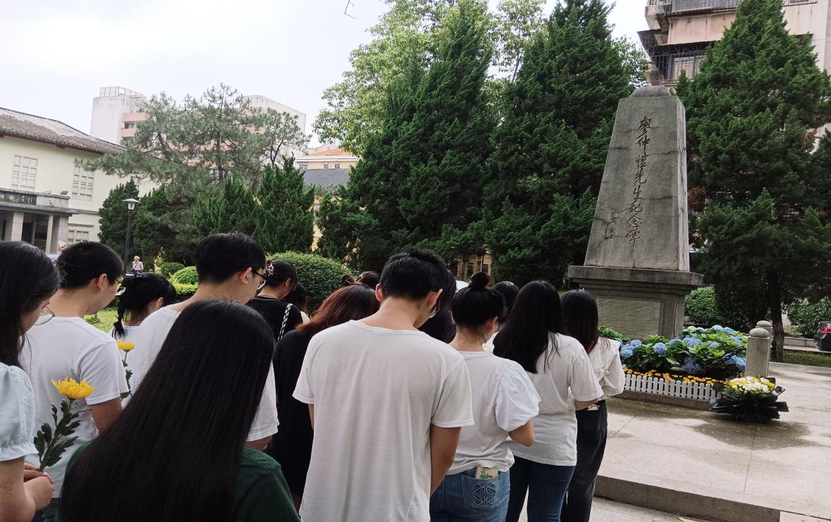 全体师生在廖仲恺先生纪念碑和何香凝先生汉白玉石像前肃立默哀,向两位先生鞠躬致敬,绕行一周,敬献花束表达哀思和悼念之情。
