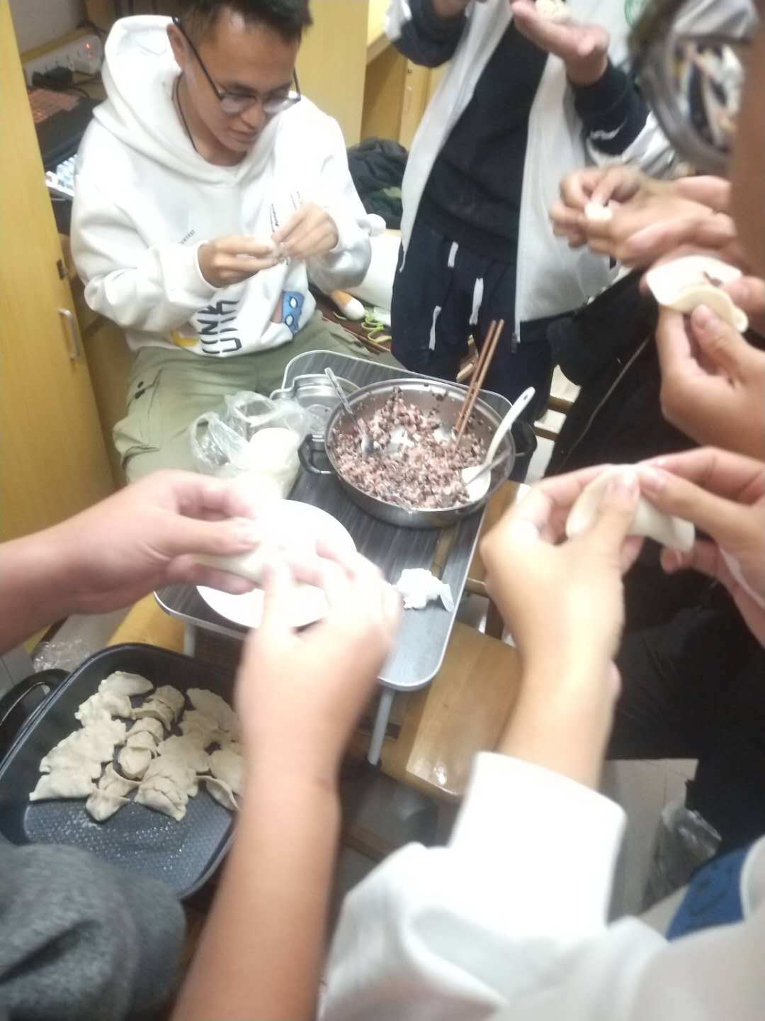 十一月份的男生节,女神们让我们班里的男生惊喜连连,她们特意为我们准备的早餐,精心为男生们做的宵夜小吃,用心地挑选礼物就为在班级生日会上给我们惊喜。当然全体男生也为班里的女神们精心地策划一场反馈仪式,一个个精心包好的香喷喷的饺子跟一样样精美的礼物,女神们吃得满意笑得也开心。