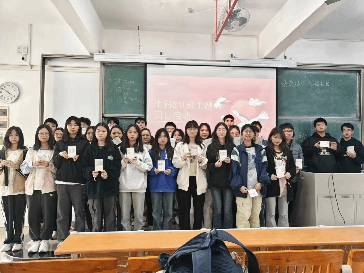 生科231班是由来自五湖四海、不同背景的同学组成的。虽然我们来自不同的地方,但我们团结友爱、积极向上、乐观勇敢,有着强烈的班级凝聚力。