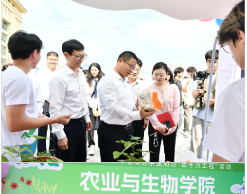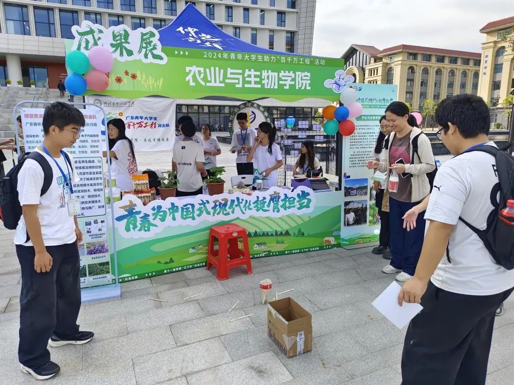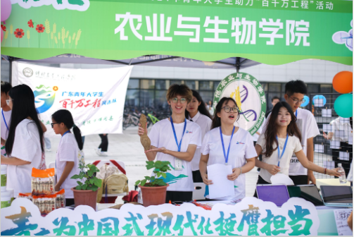 根据学校《关于开展第十一届暑期“三下乡”社会实践活动暨广东青年大学生“百千万工程”突击队行动成果展系列活动的通知》相关要求,11月5日,学院在白云校区图书馆门前广场参加“三下乡”成果展。学校党委副书记、校长廖明莅临学院展位参观成果展示,学院党委书记周超雄,党委副书记张金凤、辅导员梁定超到活动现场,了解活动开展情况。