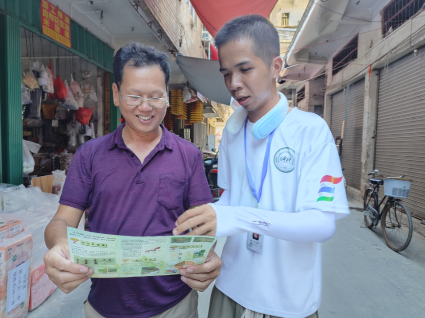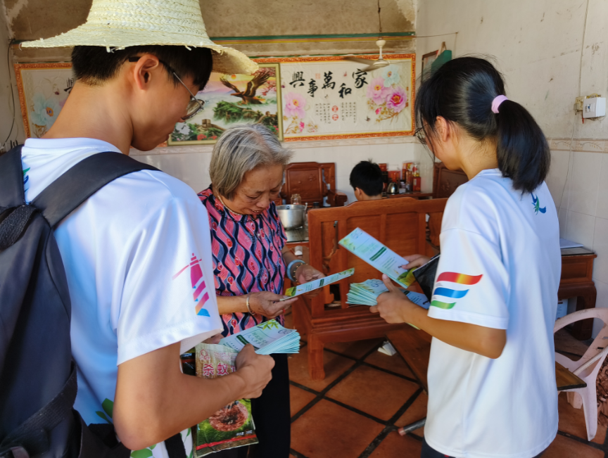7月11日下午,仲系农情小分队分为三组,分别在神仙里村、榕堂村、仙门城进行红火蚁防治宣传工作。有的队员入户宣传,有的队员则到田地寻找农民伯伯进行科普宣传,发放队员们制作的宣传折页和杀蚁饵剂,告知他们红火蚁的危害以及如何使用杀蚁饵料。