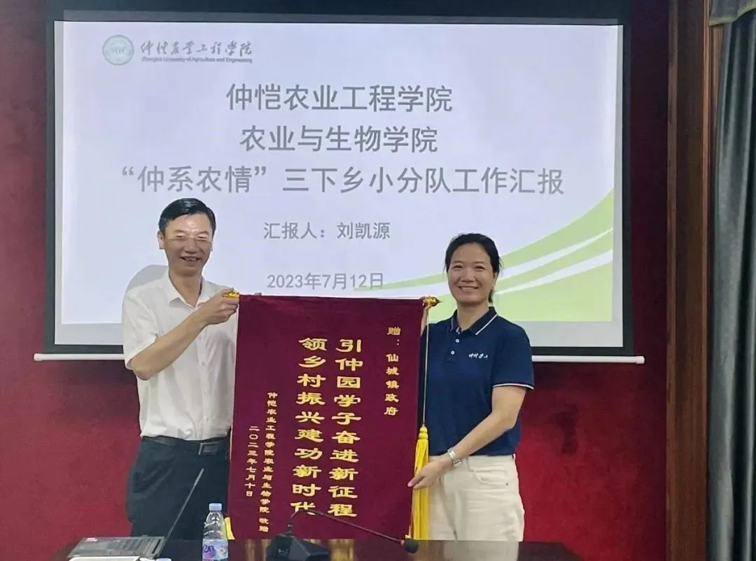 最后,张金凤代表学院赠送仙城镇政府锦旗以感谢当地政府及全体领导干部对于学院“三下乡”队伍开展社会实践活动的关心与支持。至此,仲系农情小分队三下乡实践活动圆满结束。