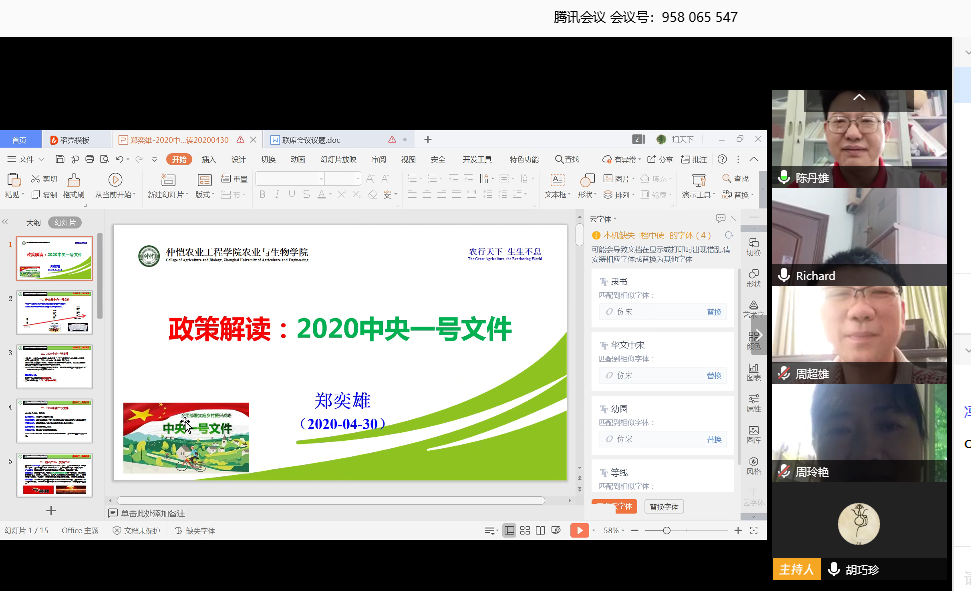 会议首先由学院院长郑奕雄同志作《2020中央一号文件政策解读》报告,详细解读2020中央一号文件,明确2020年重点任务,集中力量完成打赢脱贫攻坚战和补上全面小康“三农”领域突出短板,并提出一系列含金量高、操作性强的政策举措,号召各部门要深入学习贯彻习近平总书记关于“三农”工作的重要论述,落实《中国共产党农村工作条例》,坚持问题导向、目标导向、结果导向,树立大局意识,强化底线思维,创新工作举措,加强舆论引导,不断提升“三农”工作效能,坚决稳住农业农村发展好势头,为打赢脱贫攻坚战、全面建成小康社会做出新的更大贡献。服务乡村振兴是大家使命光荣、体现担当作为、彰显仲恺特色的广阔舞台。