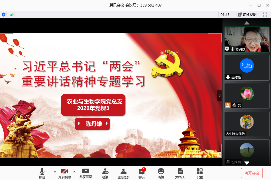 最后,陈丹雄指出,要全面贯彻落实总书记重要讲话和全国两会精神,统筹推进疫情防控和经济社会发展工作,在危机中育新机、于变局中开新局,确保完成决胜全面建成小康社会、决战脱贫攻坚目标任务。他强调,作为党员,要多关注时事政策,提高政治站位,将学习精神与岗位实际结合起来,将疫情防控与单位发展相结合,攻坚克难,扎实做好相关工作,充分发挥共产党员的先锋模范作用。