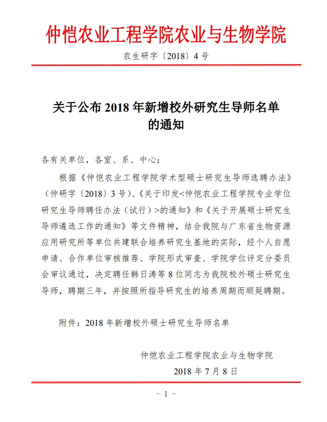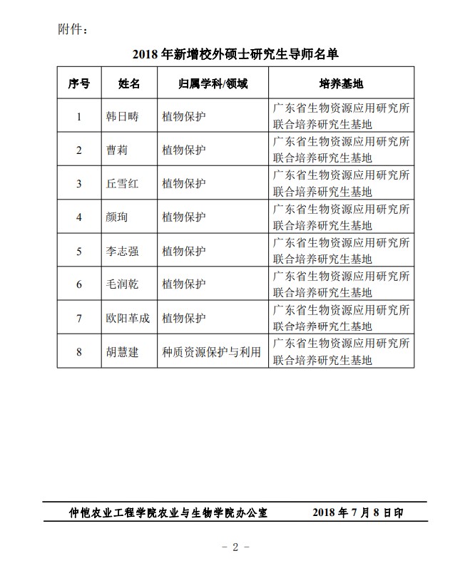 农生研字(2019)4号-昆虫所-关于公布2018年新增校外研究生导师名单的通知