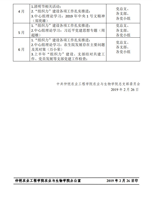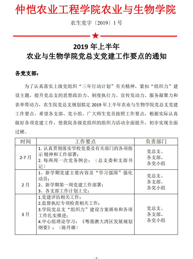 农生党字〔2019〕1号-2019年上半年m88 app党总支党建工作要点的通知