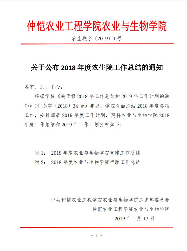 农生联字〔2019〕1 号-关于m88 app年度总结的通知