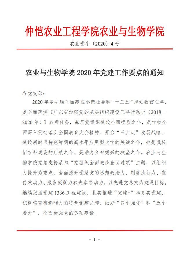 农生党字〔2020〕4 号-m88 app2020年党建工作要点的通知(3)
