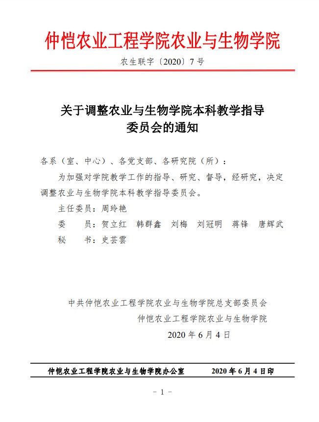 农生联字〔2020〕7号-关于调整m88 app本科教学指导委员会的通知