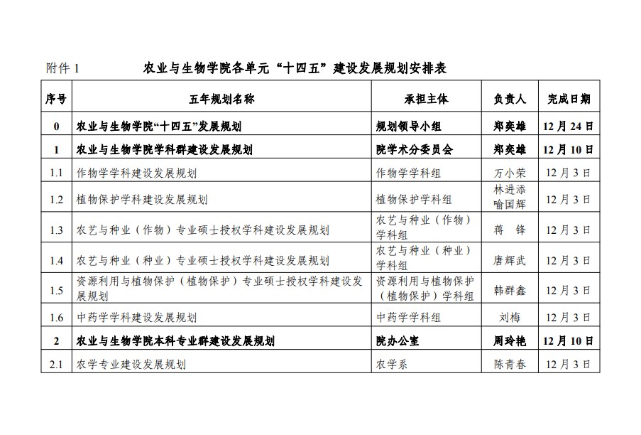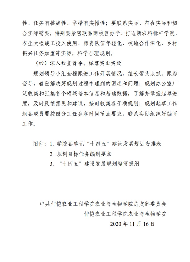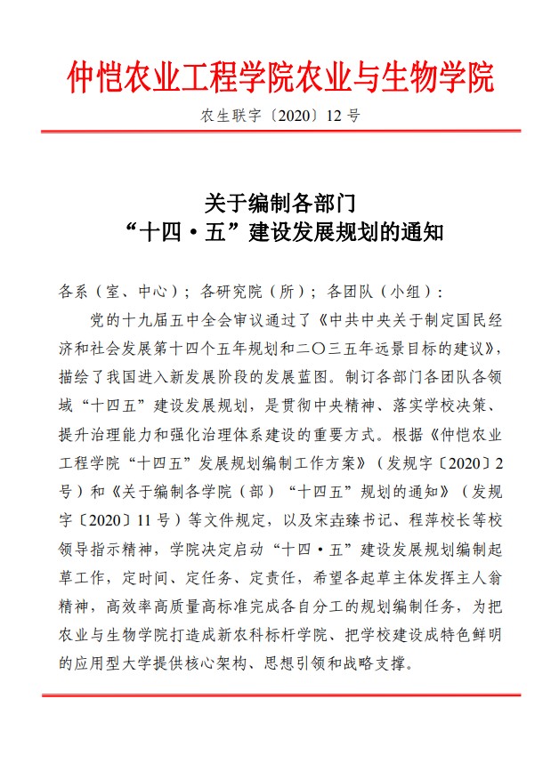农生联字〔2020〕12号-关于编制各部门“十四五”建设发展规划的通知
