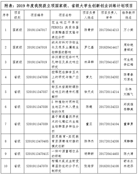 根据《广东省教育厅关于报送2019年度国家级、省级大学生创新创业训练计划立项项目的通知》(粤教高函〔2019〕40号)精神,m88 app积极发动和组织师生参加申报工作,经学生申请、学院推荐、学校专家组评审、省教育厅评审、教育部审核,m88 app共有3项获得国家级大学生创新创业训练计划立项,7项获得省级大学生创新创业训练计划立项。现将立项名单公示如下: