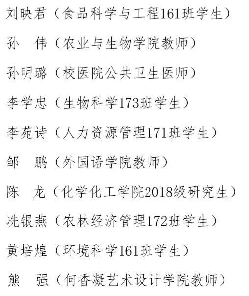 在决定中,m88 app团委获“五四红旗团委”称号;植保171团支部、植保182团支部、生科181团支部、生科182团支部、生科191团支部获“五四红旗团支部”称号;孙伟老师、李学忠同学获“仲恺青年五四奖章”;陈李金等53名同学获“优秀共青团员”称号;霍振烨等20名同学获“优秀共青团干部”称号;李学忠、许凌菁、唐芷彤、班雅欣等4名同学获“优秀团支部书记”称号。