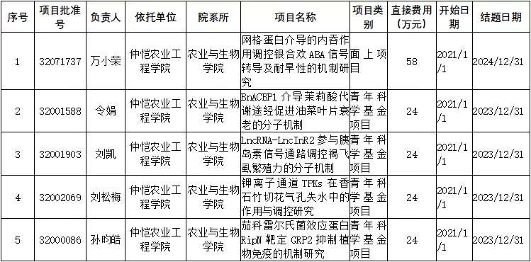 9月17日,根据国家自然科学基金委网站发布的《关于公布2020年度国家自然科学基金申请项目评审结果的通告》,m88 app获批2020年度国家自然科学基金项目5项,其中面上项目1项、青年科学基金项目4项。