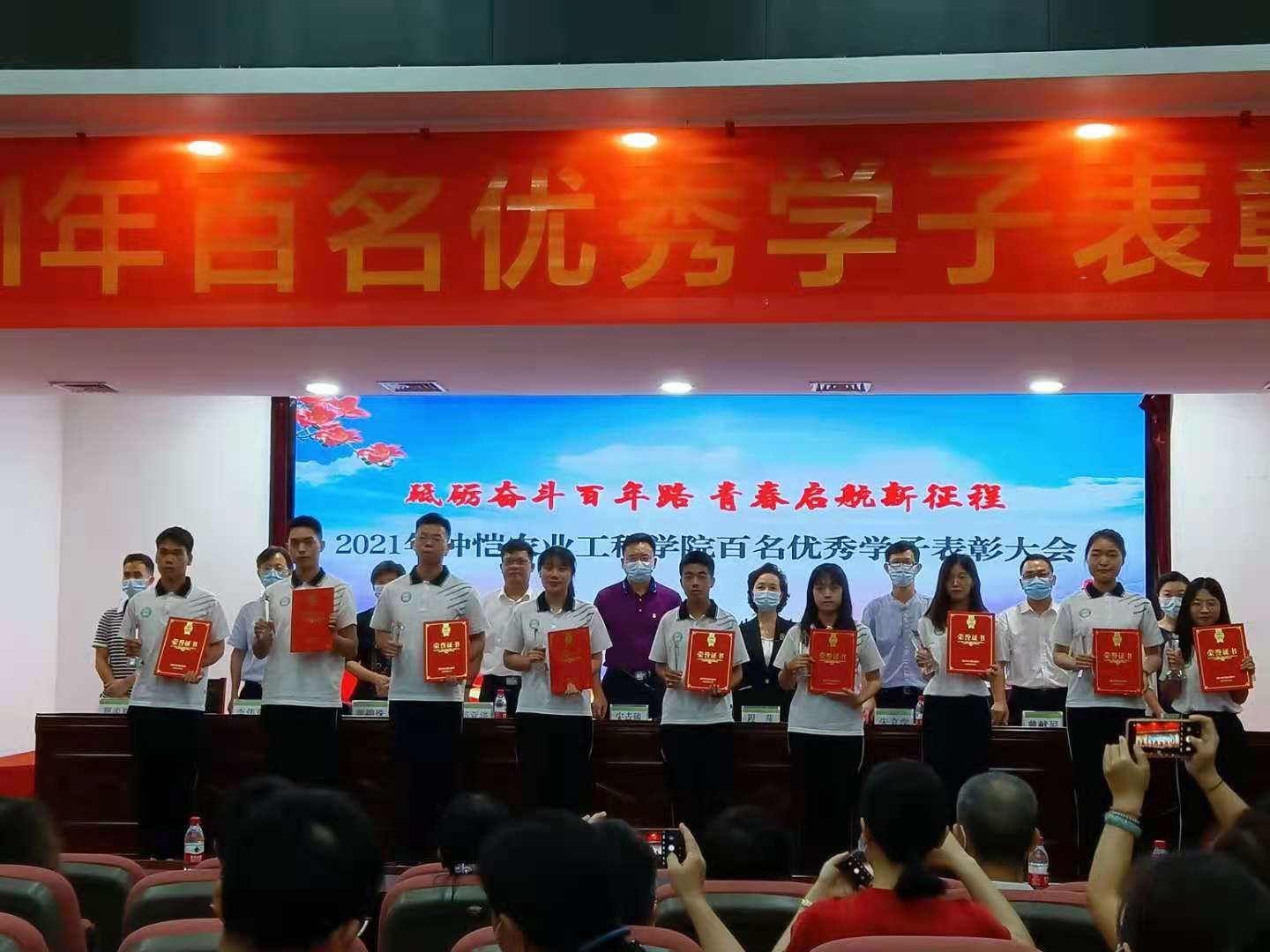 砥砺奋斗百年路,青春启航新征程。希望受表彰的学生珍惜荣誉,不骄不躁,再接再厉,勇创佳绩。希望全院学生向“百名优秀学子”学习,追求梦想、努力奋斗,在实现中国梦的过程中谱写自己人生的华丽篇章,以优异的成绩献礼建党 100 周年。