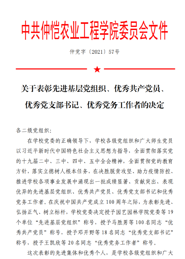 6月30日,中共m88 app委员会发布《关于表彰先进基层党组织、优秀共产党员、优秀党支部书记、优秀党务工作者的决定》。
