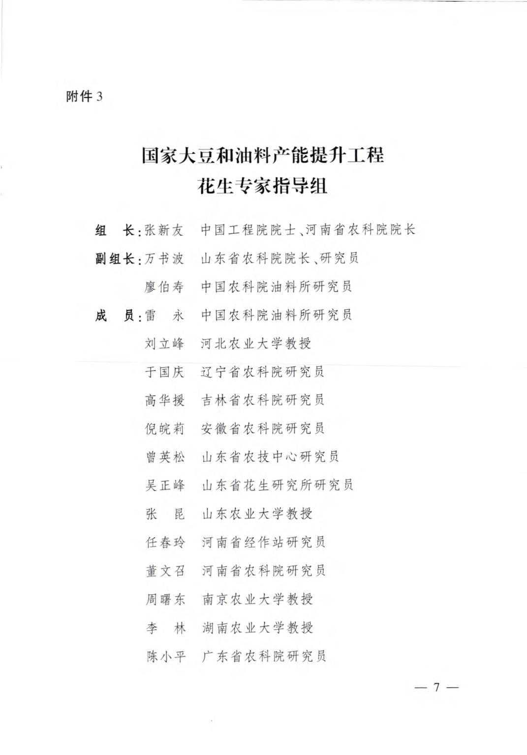 据悉,国家大豆和油料产能提升工程专家指导组分设大豆、油菜、花生、特色油料和大豆玉米带状复合种植等5个专家指导组,旨在贯彻落实党中央、国务院部署,进一步强化大豆油料扩面积、提产能技术支撑,切实抓好油料分品种、分区域的生产指导工作,更好地发挥专家“智库”作用。