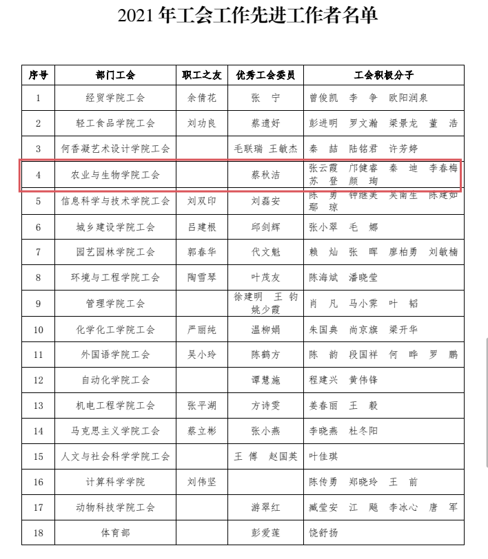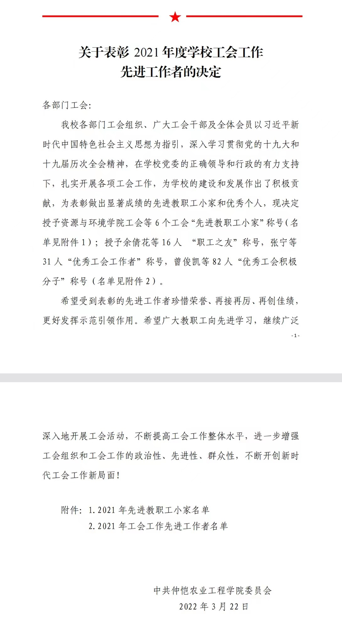 m88 app各部门工会组织、广大工会干部及全体会员以习近平新时代中国特色社会主义思想为指引,深入学习贯彻党的十九大和十九届历次全会精神,在学校党委的正确领导和行政部门的有力支持下,m88 app扎实开展各项工会工作,为学校的建设和发展作出了积极贡献,为表彰做出显著成绩的先进教职工小家和优秀个人,m88 app颁布了《关于表彰2021年度学校工会工作先进工作者的决定》,其中,授予m88 app蔡秋洁“优秀工会工作者”称号,张云霞、邝健睿、秦迪、李春梅、苏登、颜珣等6人“优秀工会积极分子”称号。