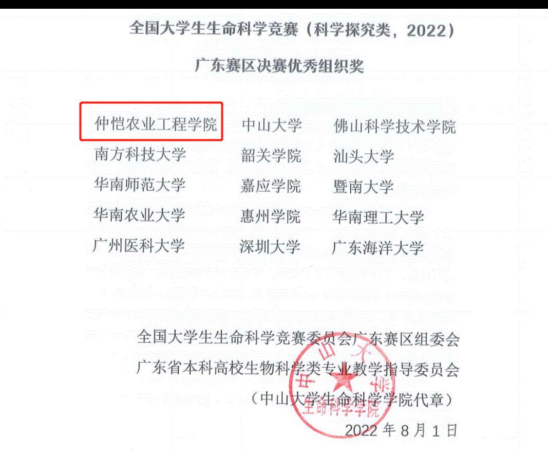 近日,全国大学生生命科学竞赛(科学研究类,2022年)广东赛区决赛在深圳大学成功举办。农业与生物学院学子在此次比赛中揽获佳绩,荣获一等奖1项和三等奖5项。同时,m88 app获得“优秀组织奖”。
