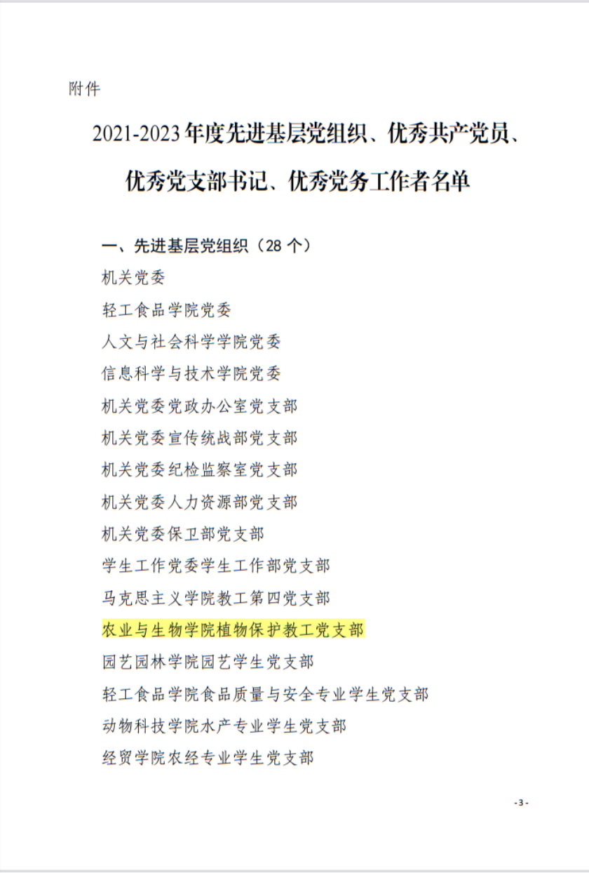 6月30日上午,学校召开的“七一”表彰大会,m88 app党委荣获“基层党建工作先进单位”,植保教工党支部荣获“先进基层党组织”,唐辉武同志荣获“优秀党支部书记”,孙晓芳同志荣获“优秀党务工作者”,刘鹏飞、孙昀皓、刘凯、张伟丽、苏登等五位老师以及梁惠琳同学荣获“优秀党员”。