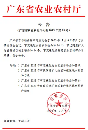 2023年12月27日,广东省农业农村厅发布关于广东省农作物品种审定结果的公告(广东省农业农村厅公告 2023 年第 75 号),m88 appm88 app、广州市特色作物种质资源研究与利用重点实验室、广东省玉米产业技术创新团队选育的糯玉米“仲糯6号”和甜玉米“仲甜10号”、“仲甜11号”分别通过广东省农作物品种审定委员会审定会议,审定编号分别为:粤审玉20230002,粤审玉20230010和粤审玉20230016,审定通过品种经农业农村部公示期满,现予公告。
