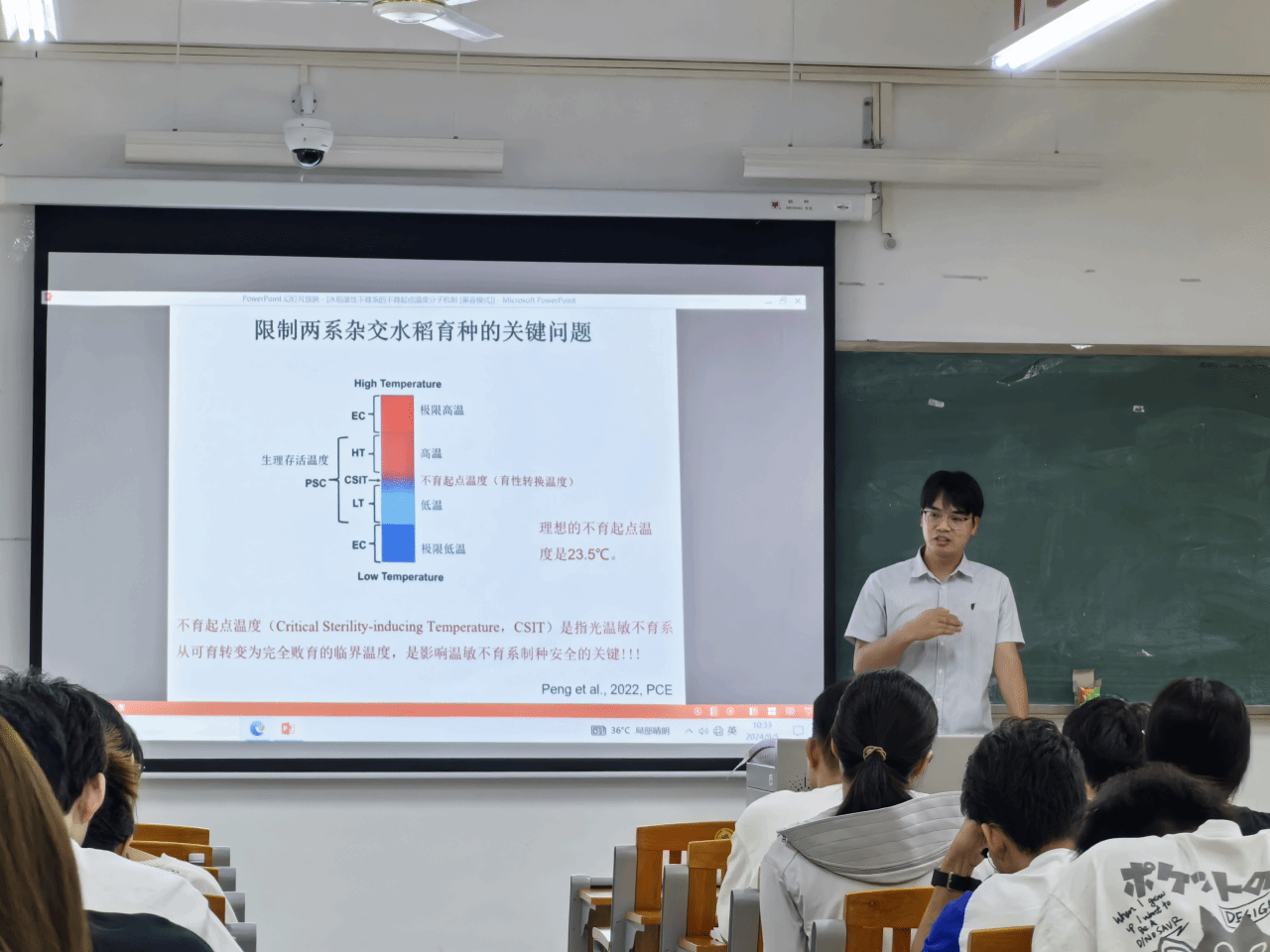 9月5日上午彭国清博士为研究生作《水稻温敏雄性不育系不育起点温度的分子机制》专题讲座,并跟同学们分享自己的科研体会,有理想,有追求;勤奋好学,勤于思考,艰苦奋斗,百折不挠。