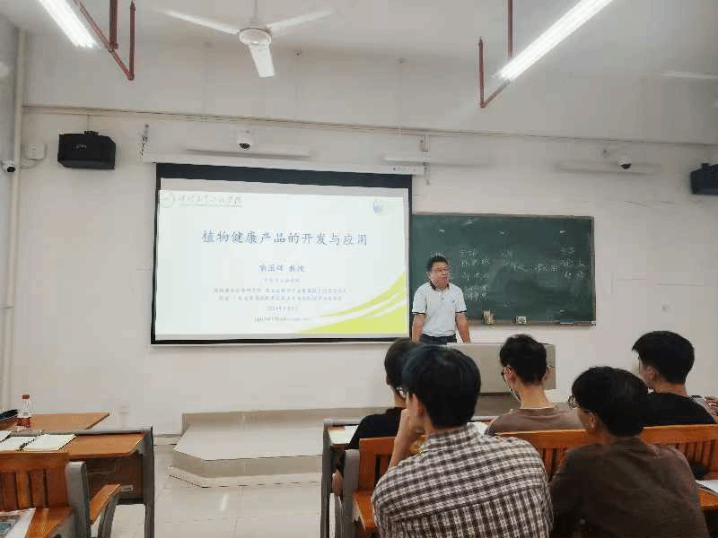喻国辉院长结合自身经历,介绍学院发展历程、办学理念、人才培养目标等,引导同学们思考读研初心,规划科研道路,告诫同学们在研一期间就要多去实验室熟悉环境、了解设备、掌握基本操作技能。到了研二阶段,则要更加主动地参与实验设计、实施和数据分析等工作,不拖拉、不敷衍,确保每天都能有目标地奋斗和努力。最后为同学们作《植物健康产品的开发与应用》专题讲座。