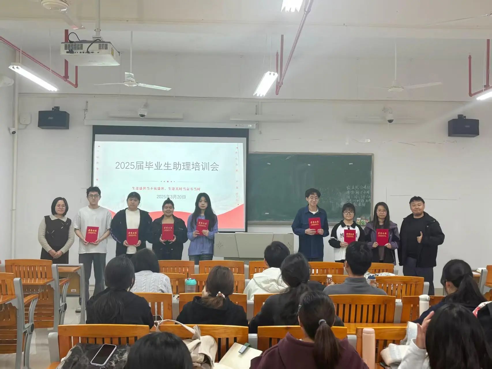 为了提升毕业生就业服务质量,落实本学期毕业生工作事务,m88 app在3月20日下午于生命科学大楼A座503室举行了2025届毕业生助理培训会议。辅导员李城、孙晓芳和全体毕业生助理出席了本次会议。会议由李城主持。